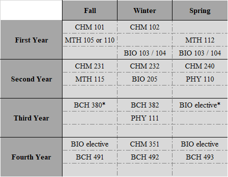 | ^Course cross-listed as CHM/BCH 382 | *Course cross-listed as CHM/BCH/BIO 335 | ||||
