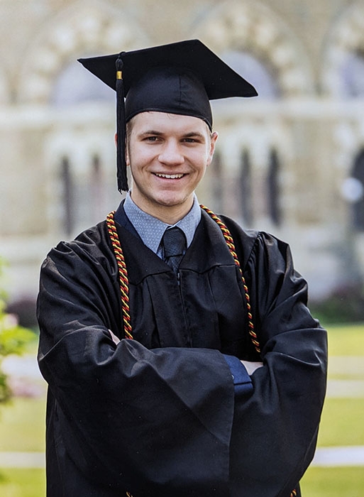 Activities and/or Internships: Beuth House co-chair; Anime Club co-president; German Club president. One summer, he conducted research at the University of Arizona for his minor with a project titled “Multi Cycle Organosilane Deposition on Silicon Dioxide,” which involved testing SiO2 coupons and their reaction to different chemicals and deposition techniques.