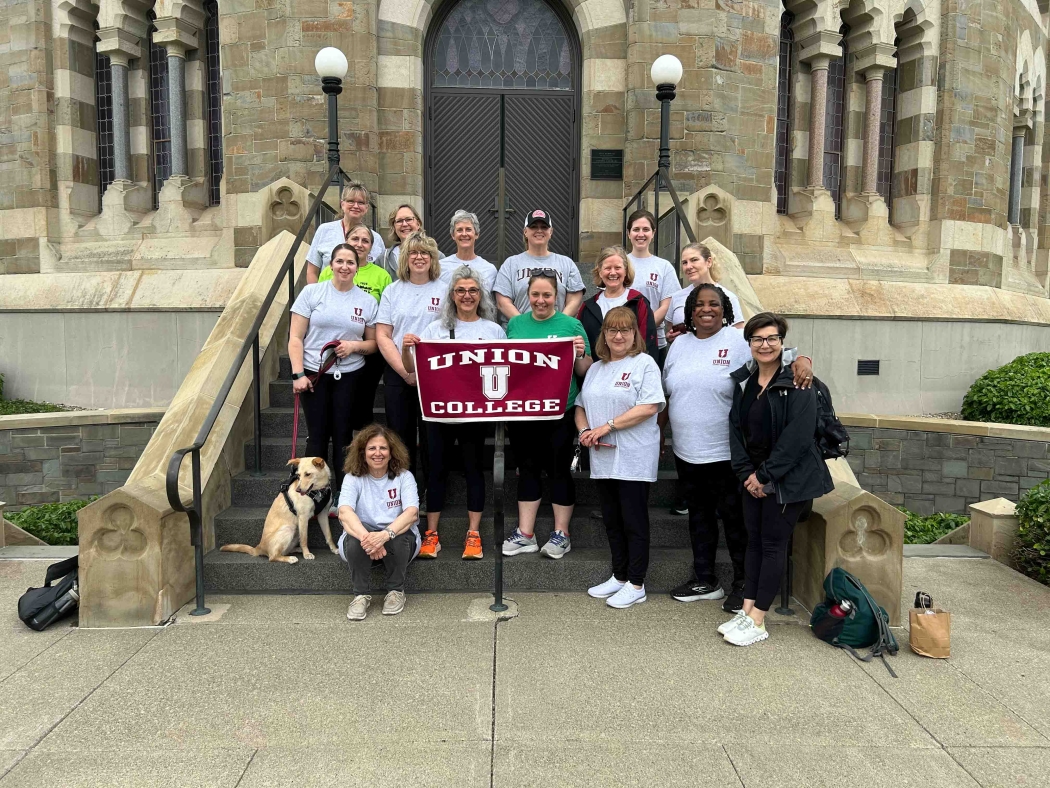 Last week, Union College faculty and staff recently participated in a walk/run as part of a CDPHP Workforce Team Challenge event. One group of employees was shuttled down to Albany to participate in-person, one group met on campus to complete the challenge, and others completed the walk/run on their own and in virtual groups. In total, Union had 60 people participate, winning us the 2nd place award for Educational Organization Largest Participation.